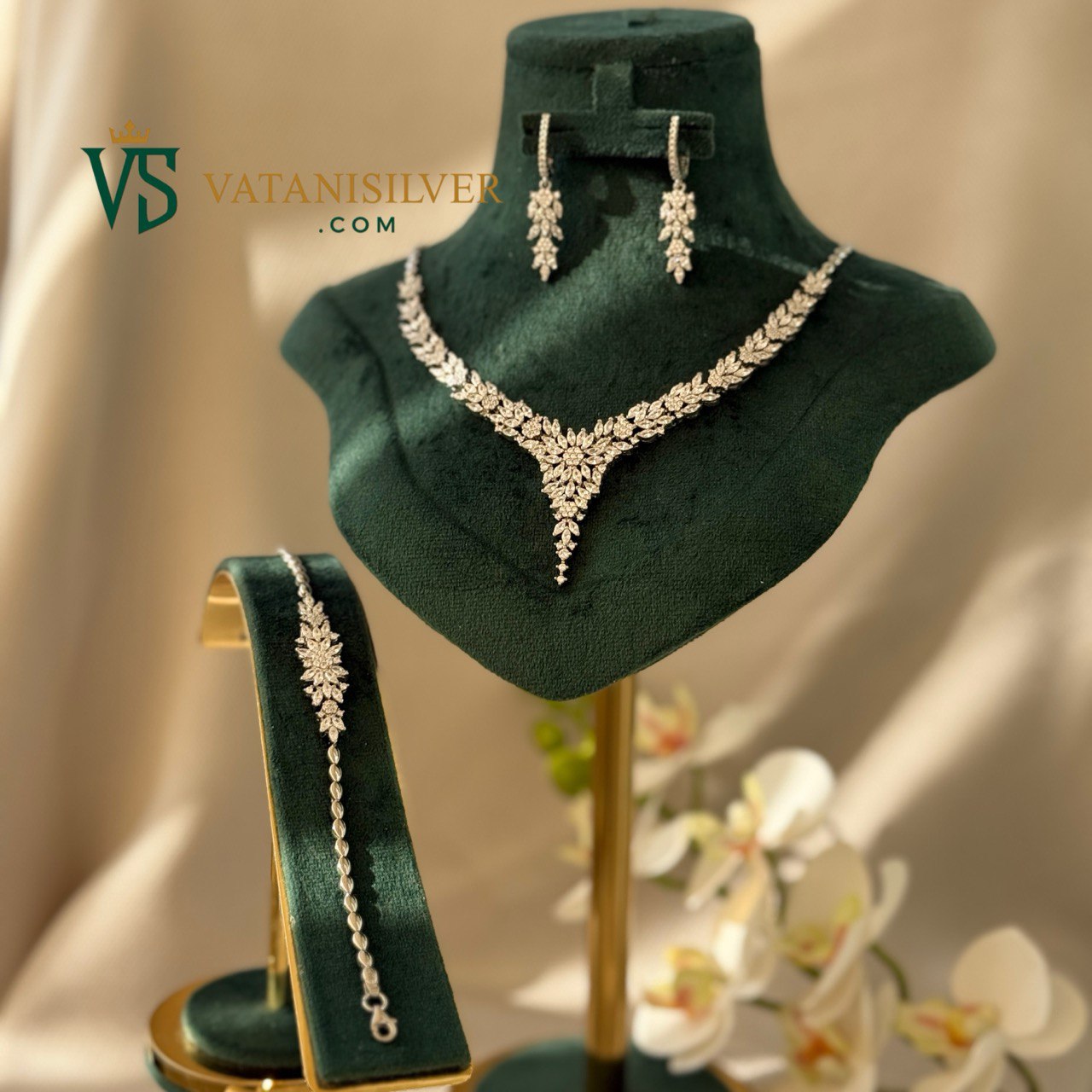 سرویس نقره جواهری با نگینهای مارکیز، یکی از زیورآلاتی است که به دلیل طراحی منحصربهفرد و درخشندگی فوقالعاده، برای استایلهای مجلسی و شیک انتخابی بیرقیب محسوب میشود. نگینهای استفادهشده از نوع زیرکونیا هستند و به دلیل تراش مارکیز، نور را از زوایای مختلف جذب کرده و انعکاس میدهند؛ به همین دلیل جلوهای چشمگیر و کاملاً جواهری ایجاد میکنند. این تراش کشیده و براق، زیبایی سرویس را دوچندان کرده و ظاهر آن را مشابه نمونههای طلا و الماس جلوه میدهد.